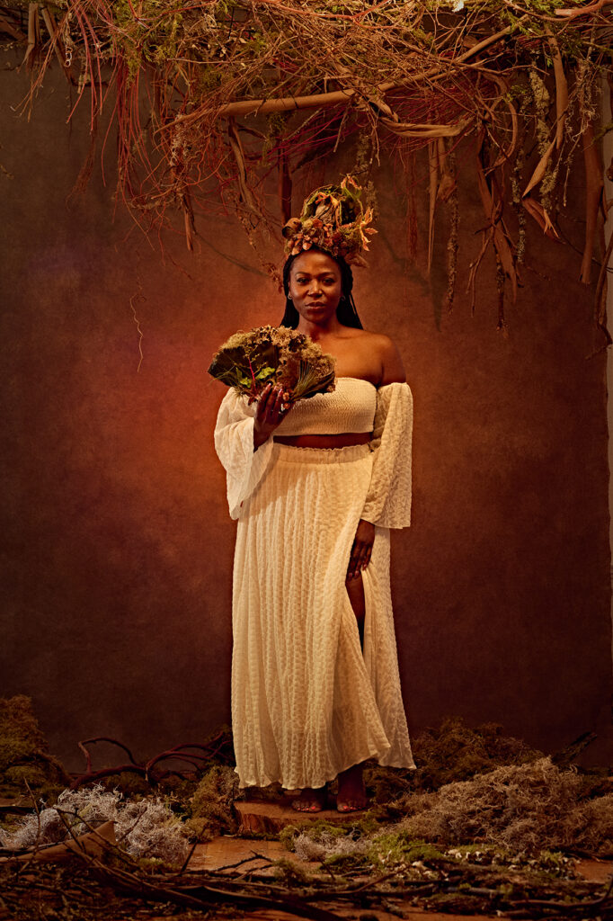 The Living Frame is a collaboration between photographer Jason Hill and woodland artist Françoise Weeks. Through dramatic light and rich texture, the work explores presence, inviting a re-seeing of Black identity as inherently intertwined with the natural world. The series explores presence through illumination, where form, color, and material converge in moments of absolute transformation.